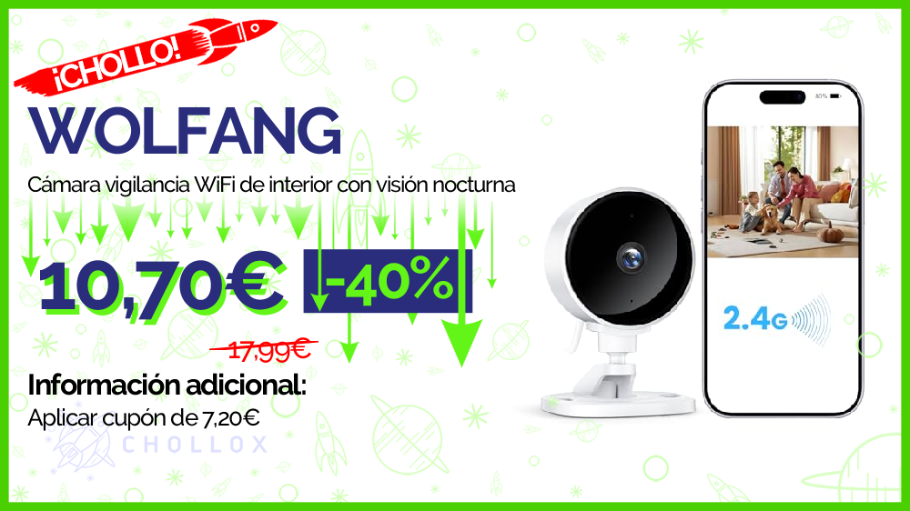 💥 🔉 WOLFANG - Cámara vigilancia WiFi de interior con visión nocturna #Amazon