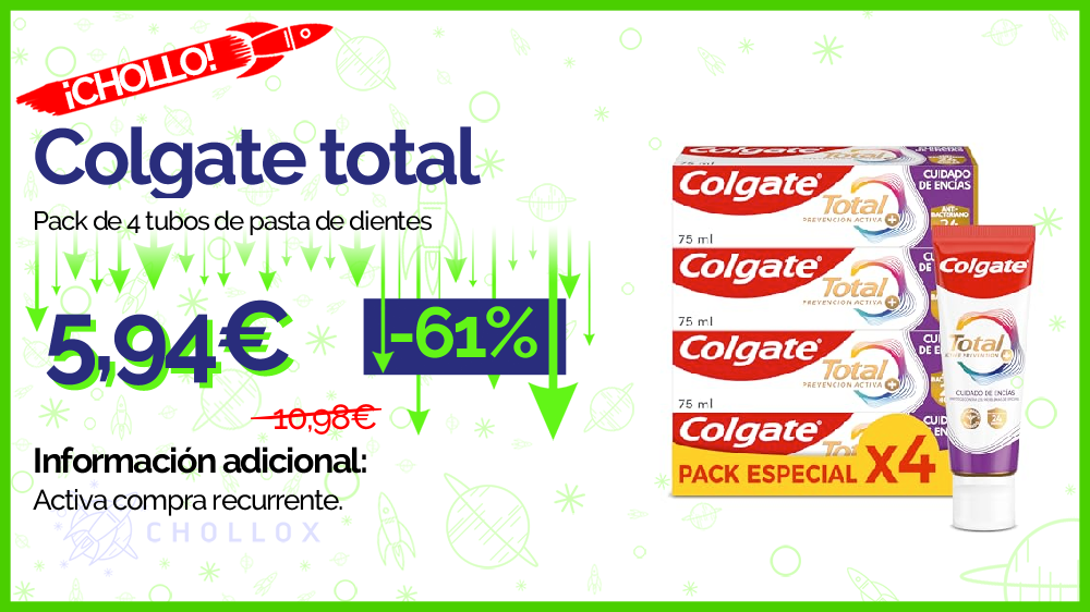 💥 🔉 Colgate Total - Pack de 4 tubos de pasta de dientes #Amazon