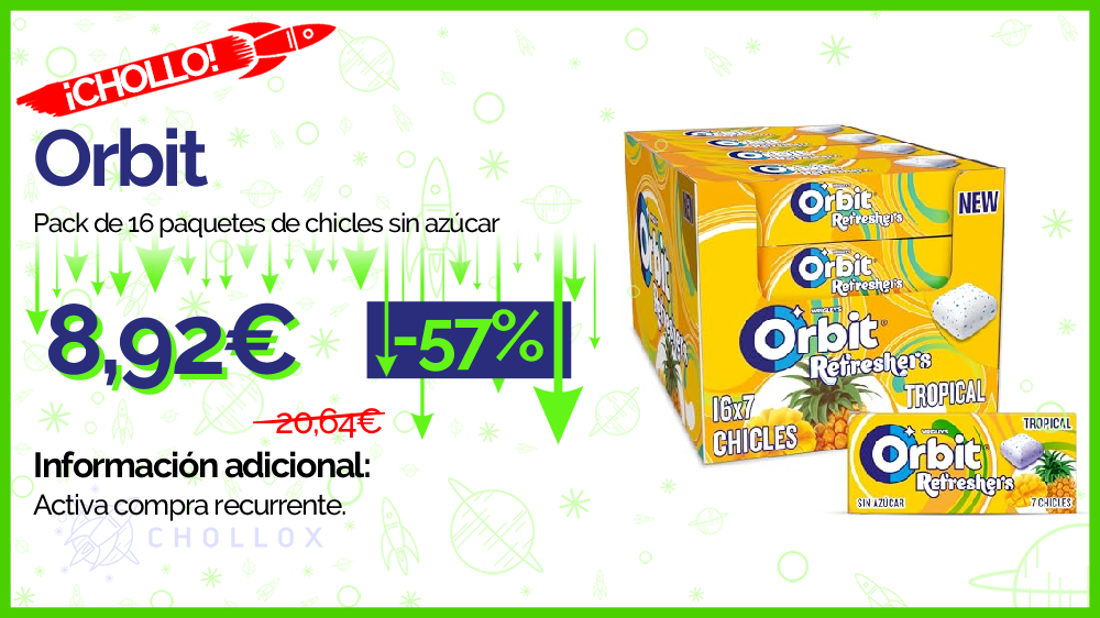 💥 🔉 Orbit - Pack de 16 paquetes de chicles sin azúcar #Amazon