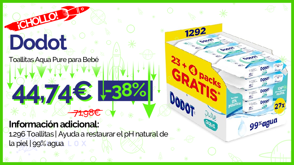 💥 🔉 Dodot - Toallitas Aqua Pure para Bebé #Amazon
