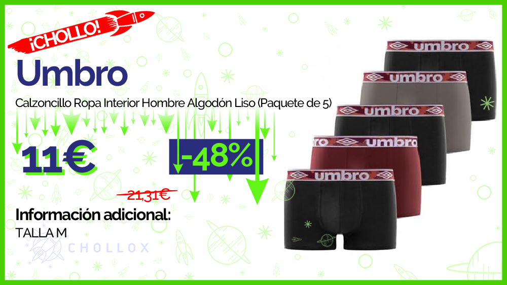 💥 🔉 Umbro - Calzoncillo Ropa Interior Hombre Algodón Liso (Paquete de 5) #Amazon