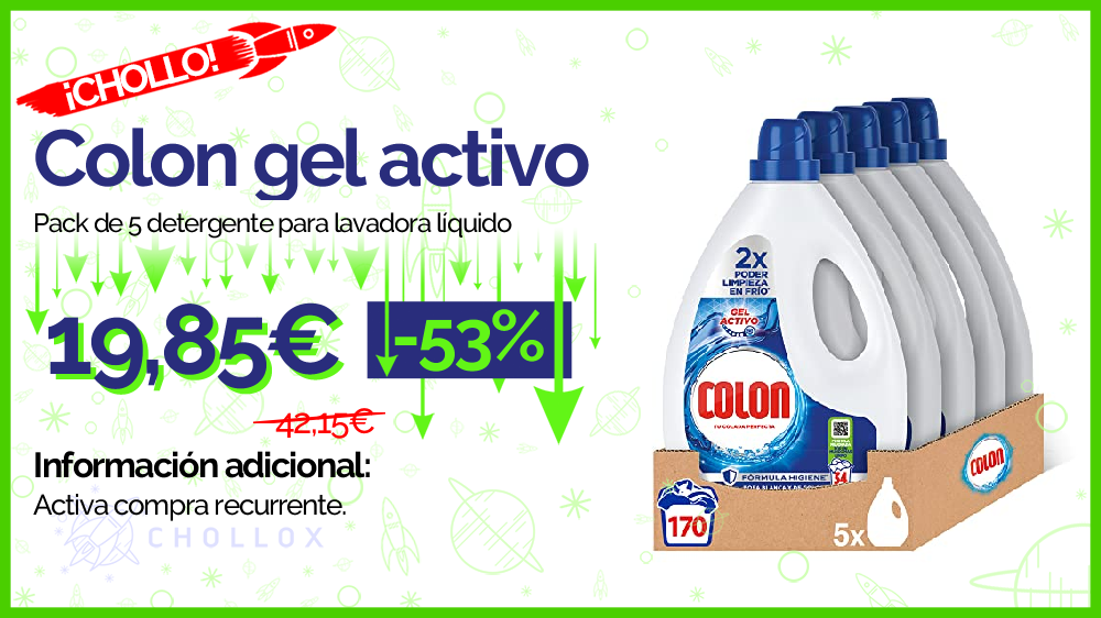 💥 🔉 Colon gel activo - Pack de 5 detergente para lavadora líquido #Amazon