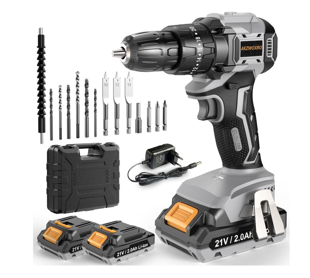 🛒 Akzwoxro Taladro Percutor sin Escobillas 21V 45N.m con 2 Baterías 2.0Ah. #Amazon