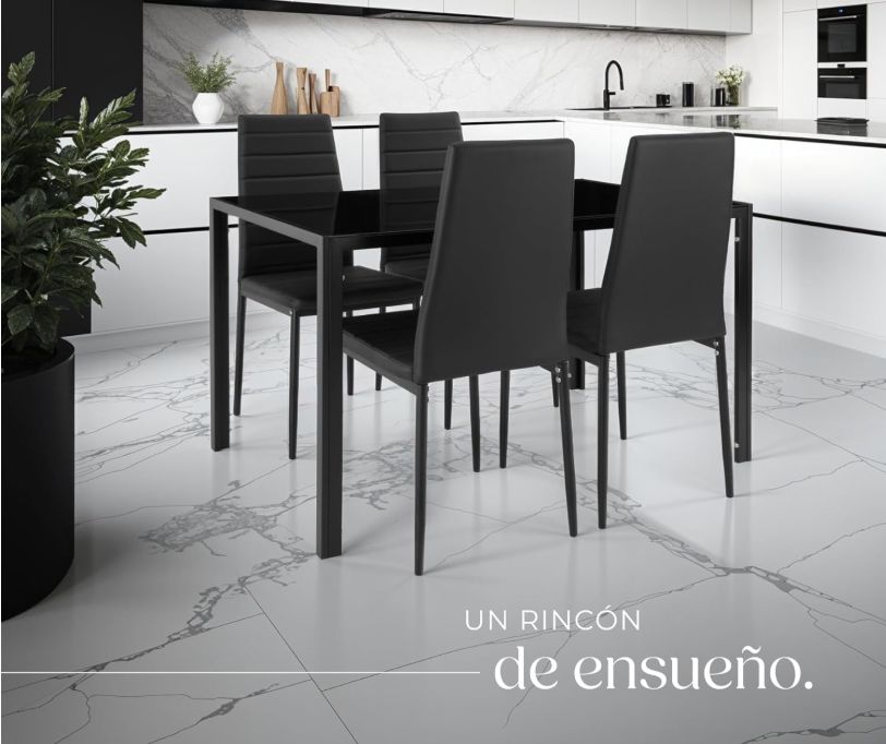 🛒 Tectake Conjunto Mesa Cristal y 4 Sillas Tapizadas Cuero Sintético Negro. #Amazon