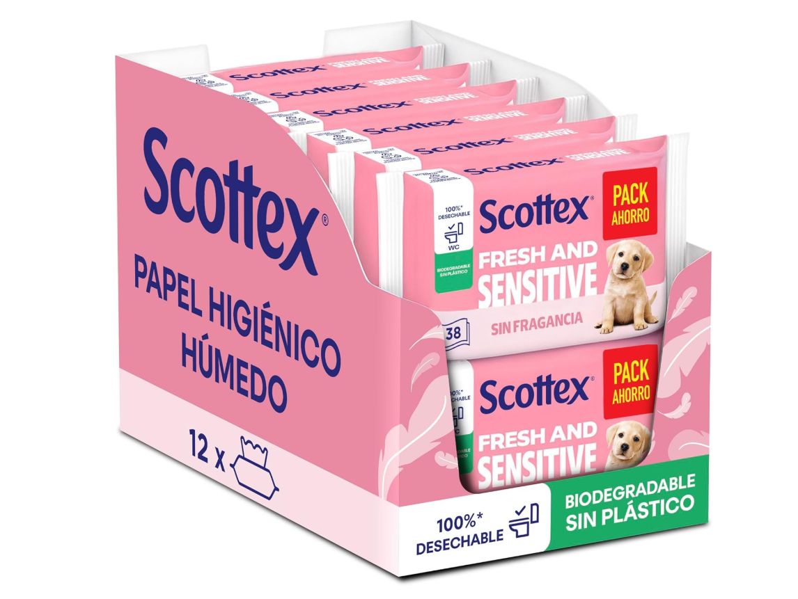 🛒 Pack 12 Scottex Sensitive Papel Higiénico Húmedo 38 servicios. #Amazon