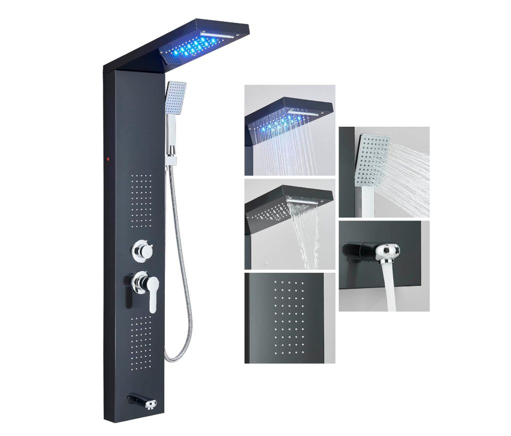 🛒 Llffssdg Panel de Ducha Hidromasaje Negro LED Acero Inoxidable. #Amazon