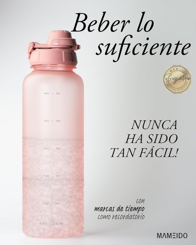 🛒 Mameido Botella con Pajita y Marcador de Tiempo 1.5 L Flamingo Pink. #Amazon
