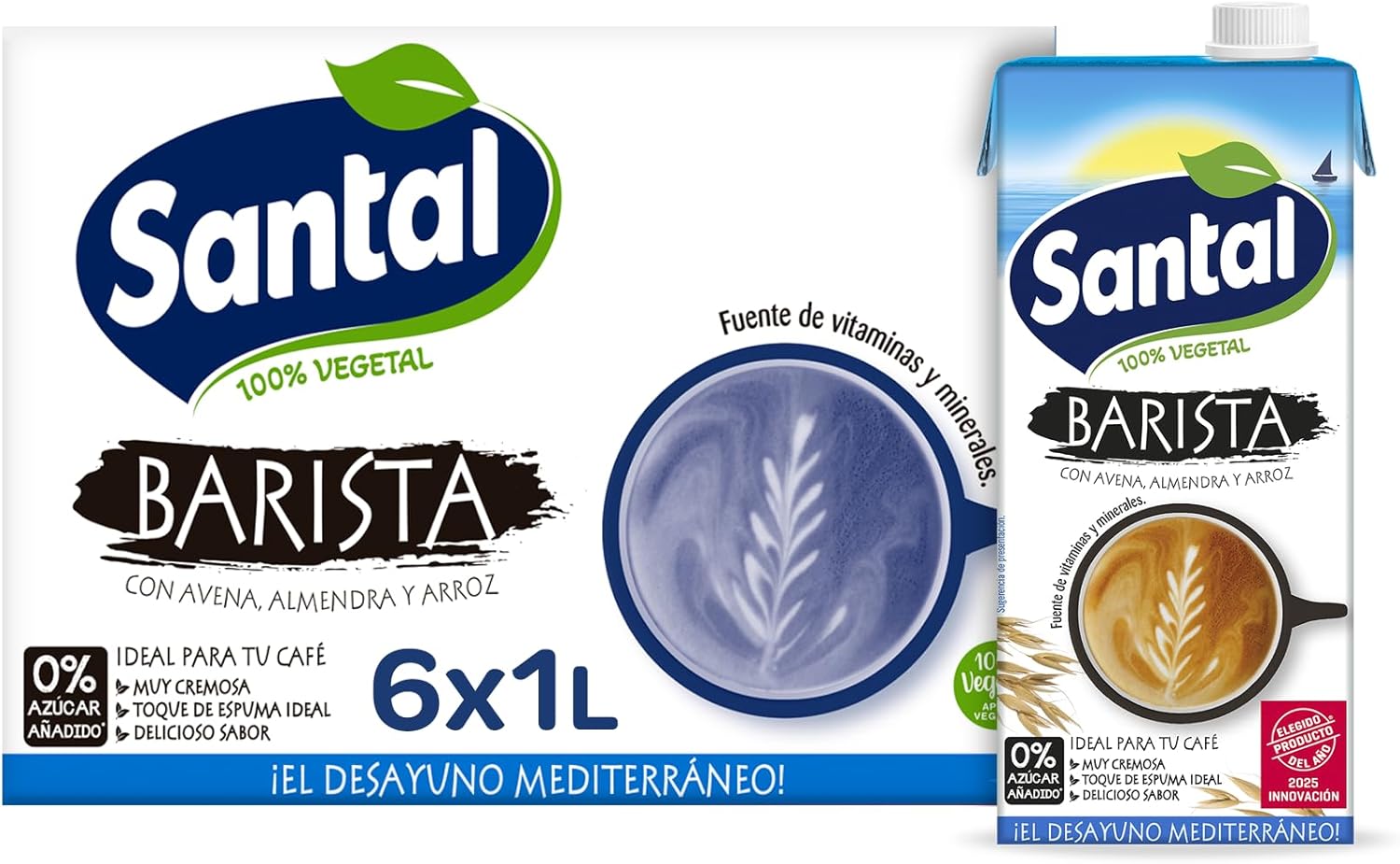 π€ Pack 6 Santal Bebida Vegetal Barista, Con Almendra, Avena y Arroz 1 L. #Amazon