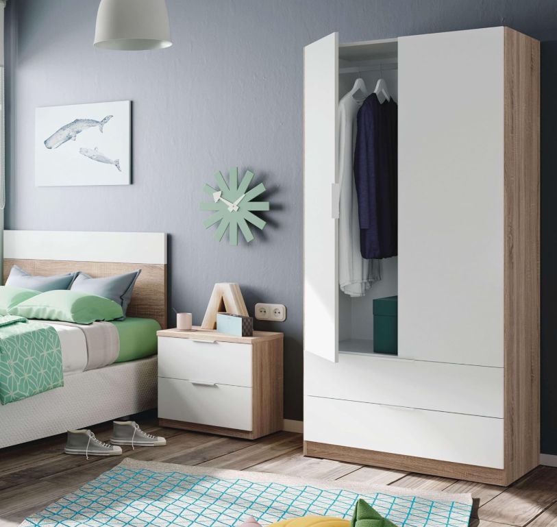 🛒 Habitdesign Armario 2 puertas y 2 cajones 81x180x52 cm blanco y roble. #Amazon