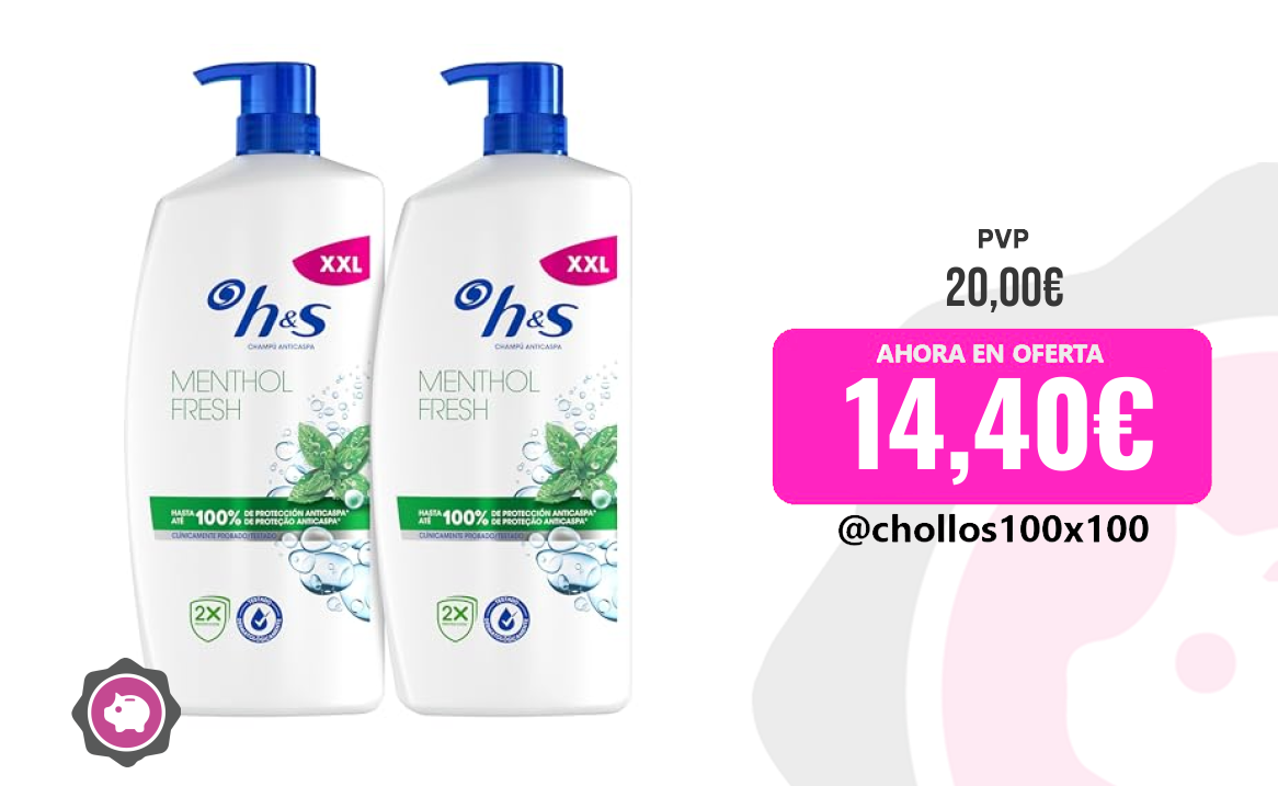 ✨¡Di adiós a la caspa y hola a un cuero cabelludo sano y fresco! Con H&S Menthol Fresh 2x1000ml, obtén hasta 100% de protección anticaspa comprobada, mientras disfrutas de un aroma revitalizante a mentol. Su fórmula Microbiome Balance cuida tu cuero cabelludo a diario, ¡y su envase reciclado te permite ser eco-friendly! ¿Lista para un cabello impecable y una sensación de frescura que dura todo el día?