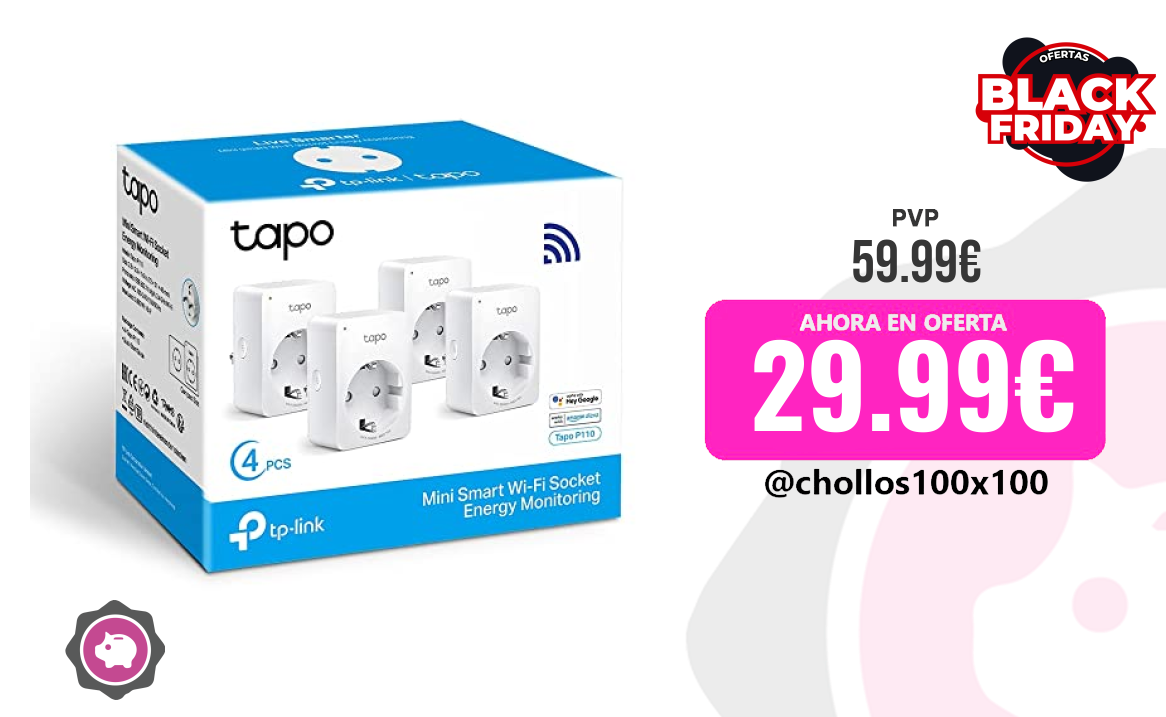 ✅ Tapo P110 (4 paquetes) – Mini enchufe inteligente Wi-Fi (con monitoreo de energía), programación encendido/apagado, ahorro de energía, compatible con Alexa y Google Home
