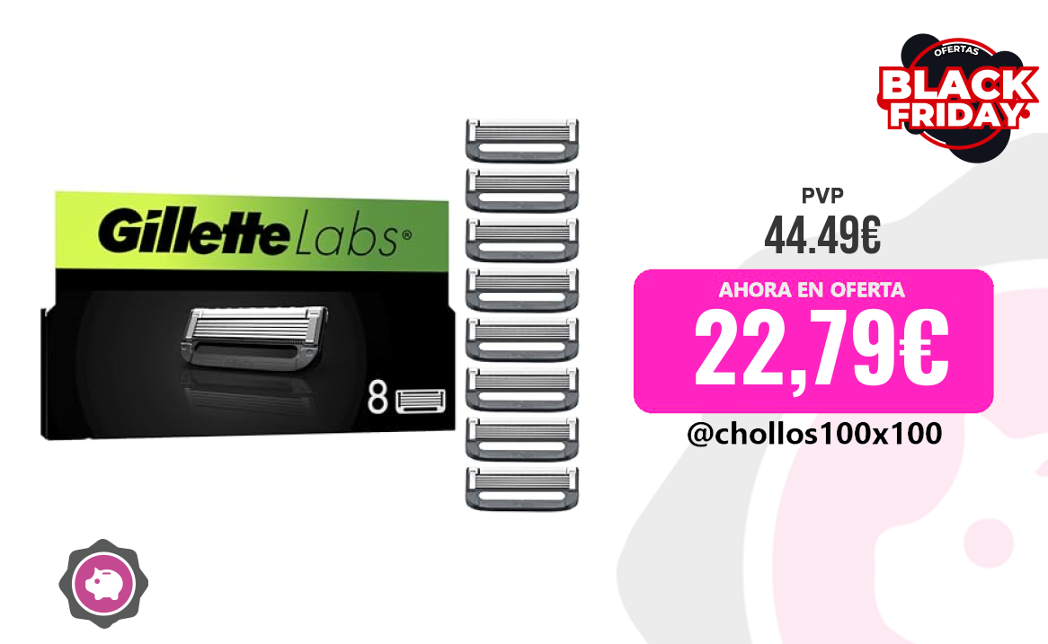 ✅ Gillette Labs Recambios Con Barra Exfoliante Y Heated Razor, 8 Recambios