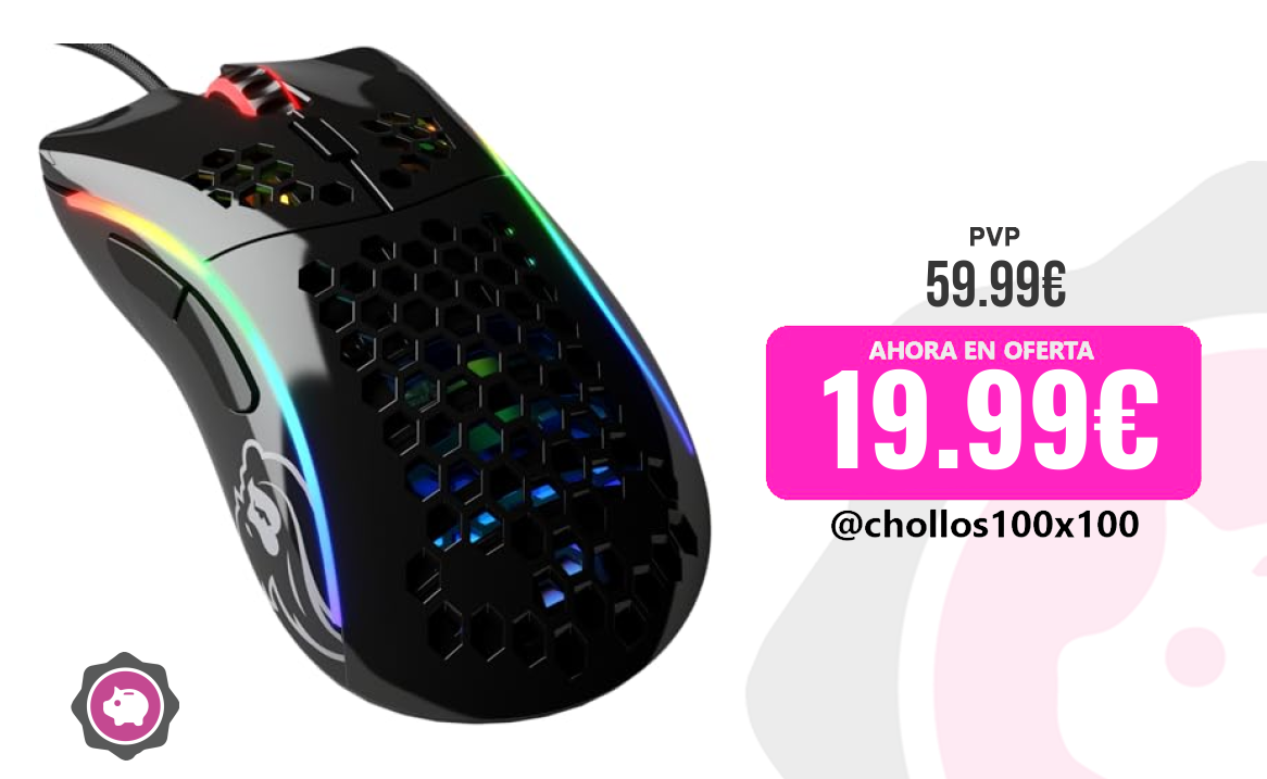 ✅ Glorious Gaming Model D- (Pequeño) Ratón gaming con cable - 61 g superligero, diseño colmena, RGB, ergonómico, sensor Pixart 3360, switches de Omron, deslizadores de PTFE, 6 botones - Negro brillante