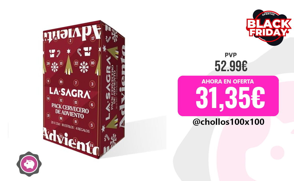 ✨¡La cuenta atrás para Navidad nunca fue tan deliciosa! 🍻 Descubre cada día una cerveza artesanal La Sagra diferente en este calendario de adviento cervecero. 20 cervezas de 33cl + 4 sorpresas te esperan. ¡El regalo perfecto para los amantes de la buena birra o para darte un capricho estas fiestas! 😉