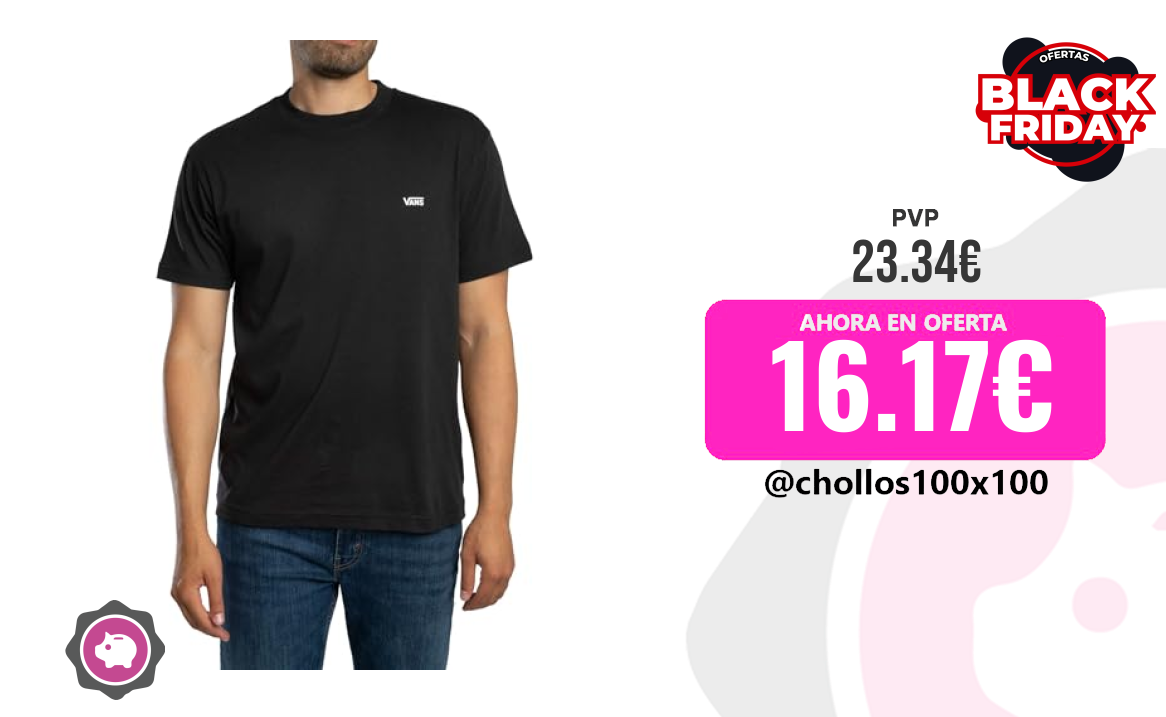 ✨ Exprésate con estilo con la camiseta Vans para hombre. 🖤 Su diseño clásico en negro y el logo en el pecho izquierdo la hacen perfecta para cualquier ocasión. ¡Hazla tuya y destaca entre la multitud! ✨
