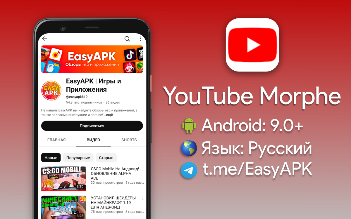 YouTube Morphe — это новая модификация, которая продолжает развитие популярного мода ReVanced с теми же возможностями. Находится в активной разработке. #apps @EasyAPK