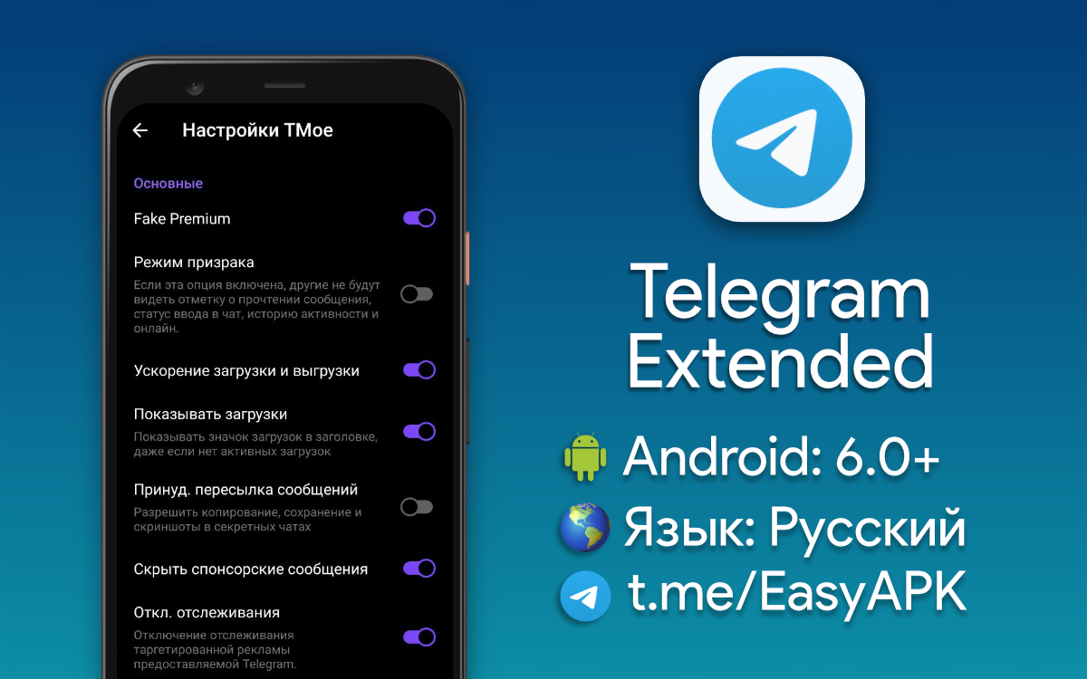 Telegram Extended — мощная модификация официального клиента Telegram с различными дополнительными возможностями. #apps @EasyAPK