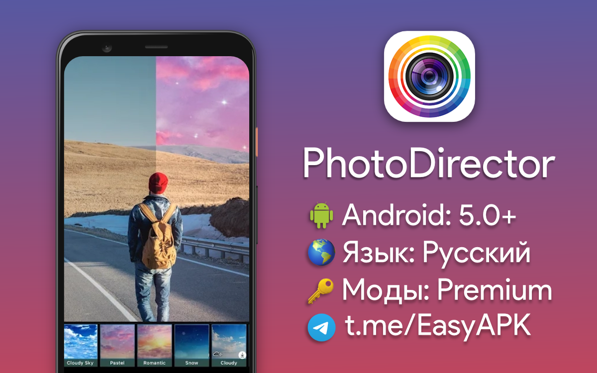 PhotoDirector — мощный редактор, где много эффектов и фильтров. Цветокоррекция, размытие, удаление объектов и другое. #apps @EasyAPK