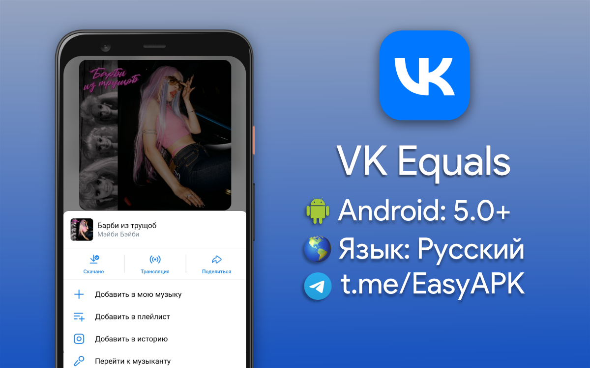 VK Equals — ещё один неплохой мод на официальный клиент ВКонтакте. Находится в активной разработке. #apps @EasyAPK