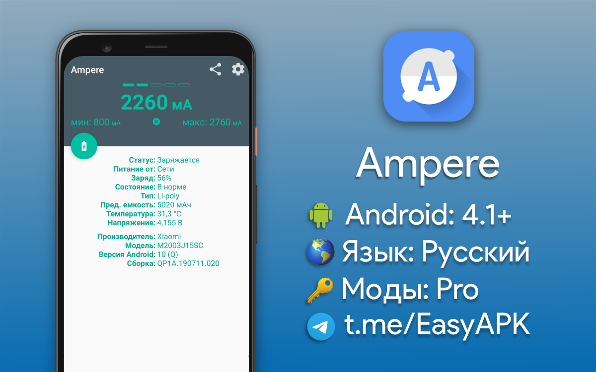 Ampere — программа, которая покажет, как быстро заряжается и разряжается ваше устройство, а также отображает детальную информацию об аккумуляторе. #apps @EasyAPK