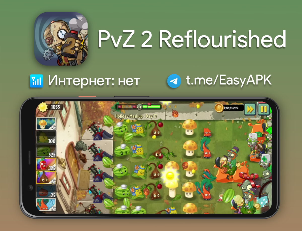 PvZ 2 Reflourished — это казуальный мод с новыми мирами в полном стиле PopCap, с новой музыкой, графикой, боссами и многим другим! Наряду с новыми мирами Reflourished приносит совершенно новые дополнительные сложные уровни расширения для оригинальных миров. #games @EasyAPK