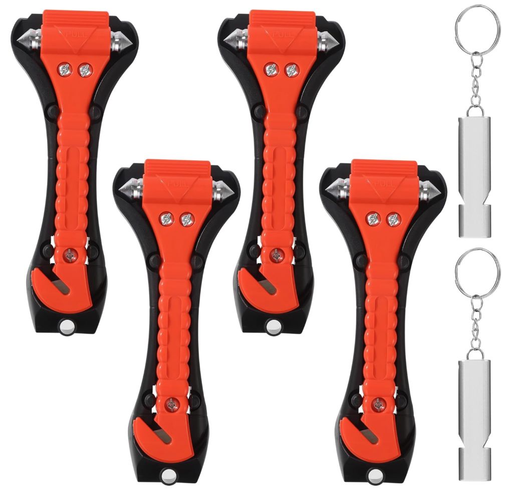 π 4 Pcs Martillo Rompe Cristales Coche y Cortador de CinturΓ³n de Seguridad, 2 en 1, Kit Emergencia con 2 Silbato. #Amazon