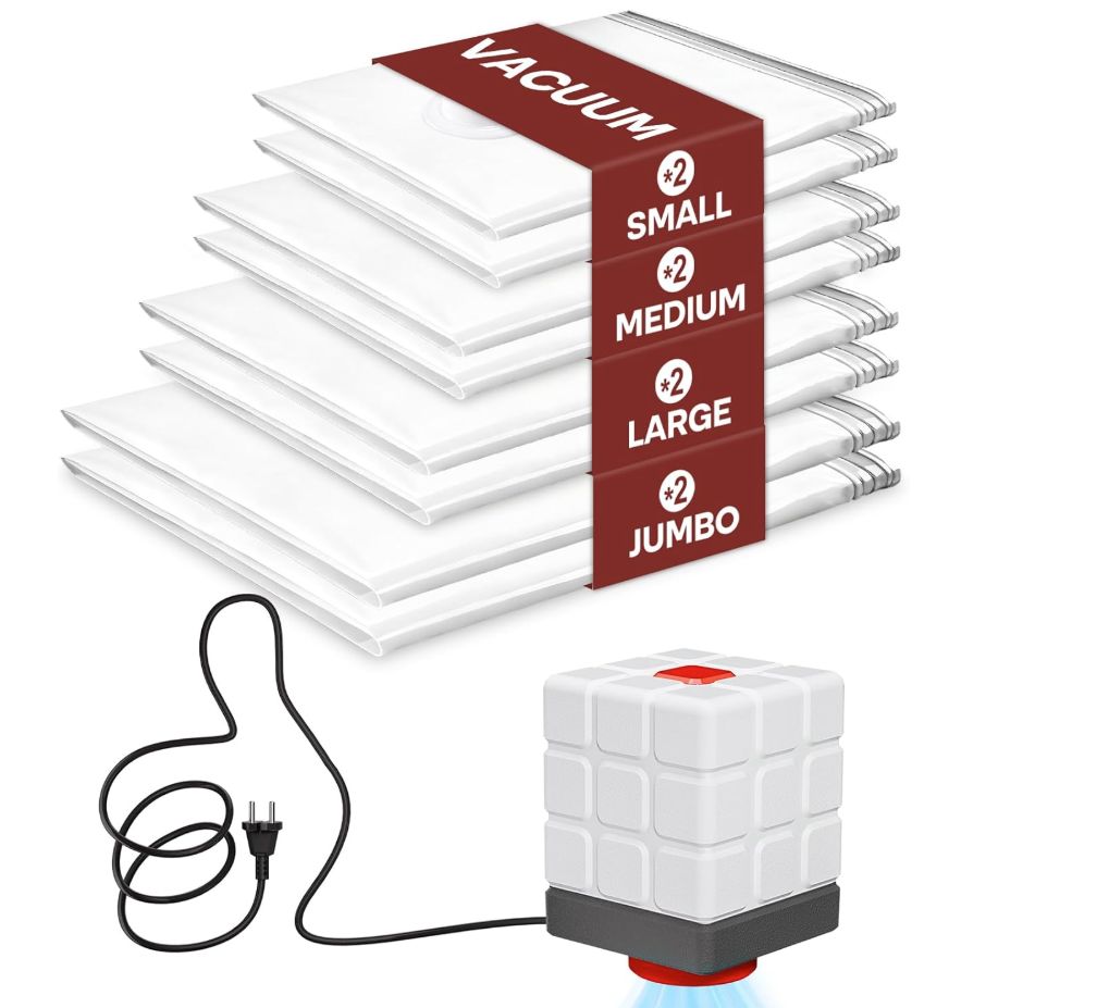 π Bolsas VacΓo Ropa, con Bomba ElΓ©ctrica PortΓ‘til, 8 Bolsas (2 pequeΓ±as, 2 medianas, 2 grandes, y 2 extragrandes), para Guardar Ropa, Edredones, Mantas, etc. #Amazon