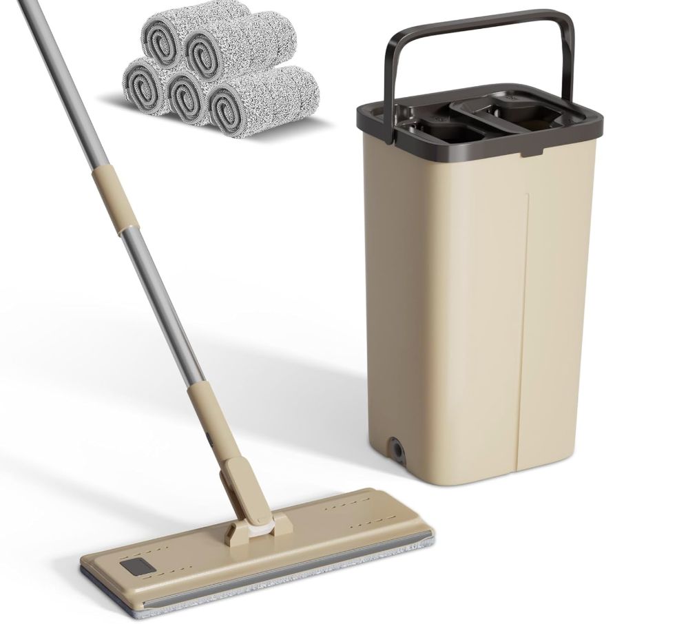 ๐ Juego de Fregona y Cubo, Mopa Fregona con Cubo Escurridor, Plana Microfibra con 6 Almohadillas. #Amazon