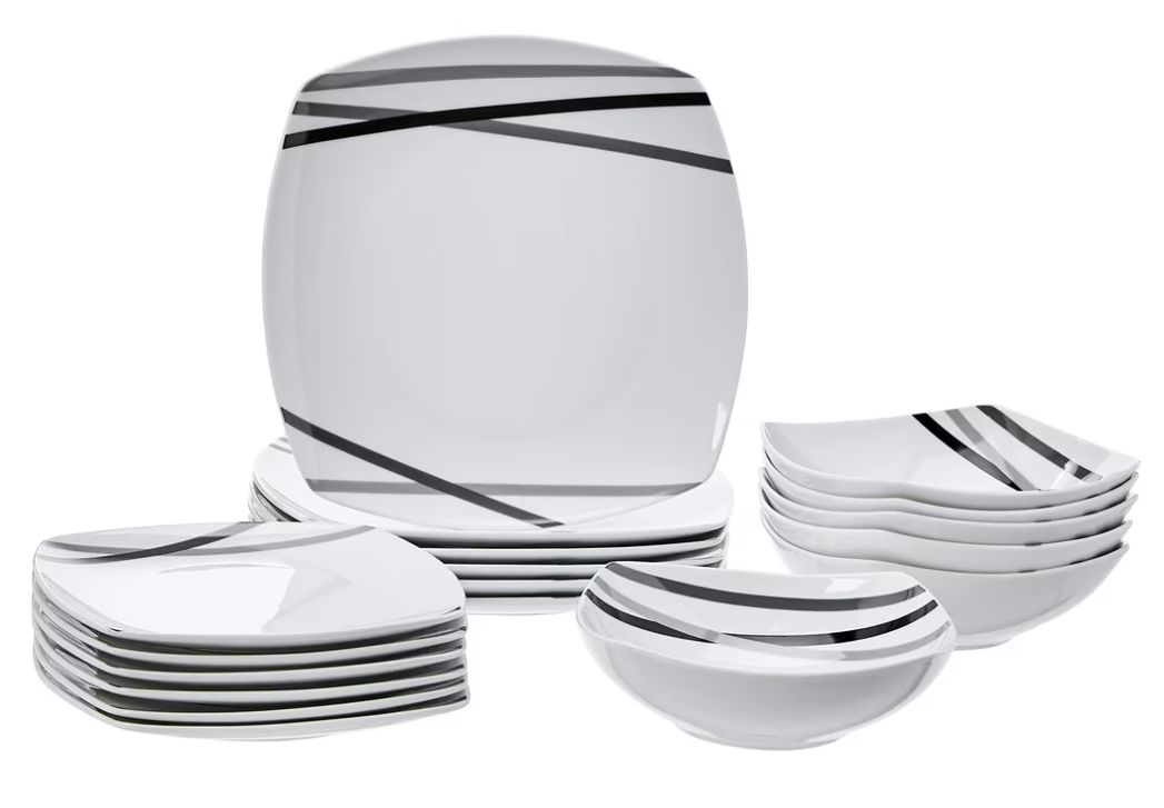 ๐ Amazon Basics Vajilla de 18 Unidad, Lรญneas Modernas, 6 Servicios. #Amazon