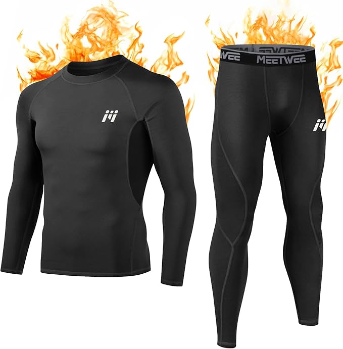 MEETWEE Set di Biancheria Intima Termica da Uomo, Maglia a Maniche Lunghe con Strato di Base Sportivo e Pantaloni ad Asciugatura Rapida, Tuta da Allenamento per Sci, Corsa ed Escursionismo