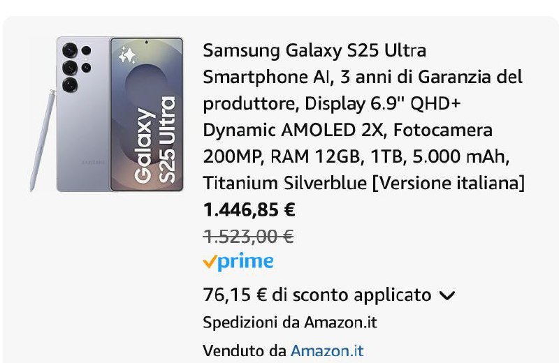 Samsung Galaxy S25 Ultra Smartphone AI, 3 anni di Garanzia del produttore, Display 6.9'' QHD+ Dynamic AMOLED 2X, Fotocamera 200MP, RAM 12GB, 1TB, 5.000 mAh [Versione italiana]