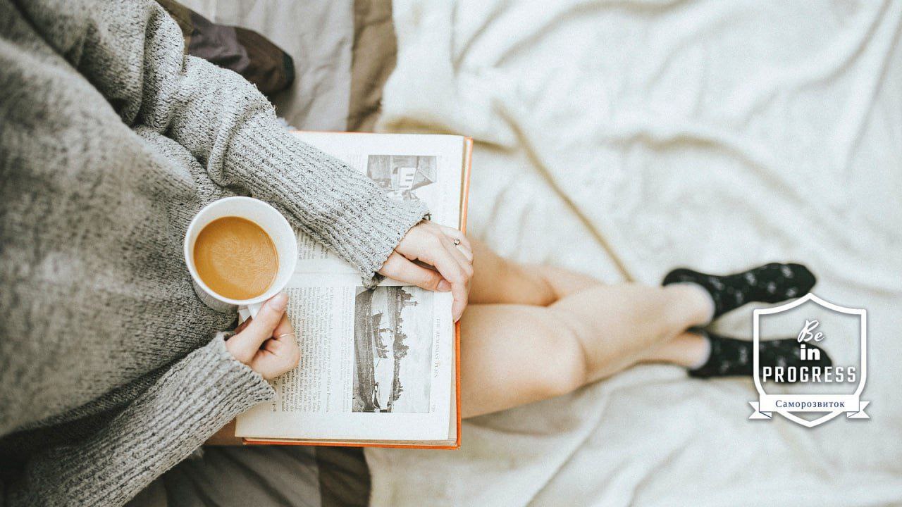 5. Читання. Для постійного розвитку потрібно читати. Читання — це нові знання та відкриття. Читання зранку — це порція натхнення завдяки цим відкриттям, і воно задає настрій всьому дню. Скільки читати? Хоча б 5-10 сторінок щодня.