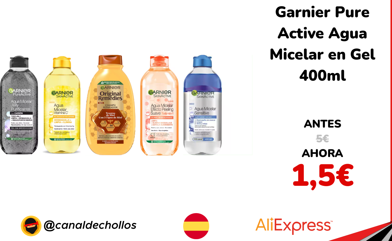 🔹 Garnier Pure Active Agua Micelar en Gel 400ml solo 1,5€ ❗️💥 (PVP: 5€)