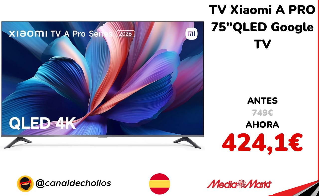 🔹 TV Xiaomi A PRO 75"QLED Google TV solo 424,1€ ❗️💥 (PVP: 749€)