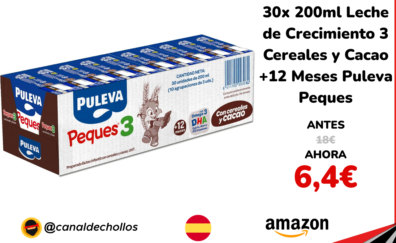 🔹 30x 200ml Leche de Crecimiento 3 Cereales y Cacao +12 Meses Puleva Peques solo 6,4€ ❗️💥 (PVP: 18€)