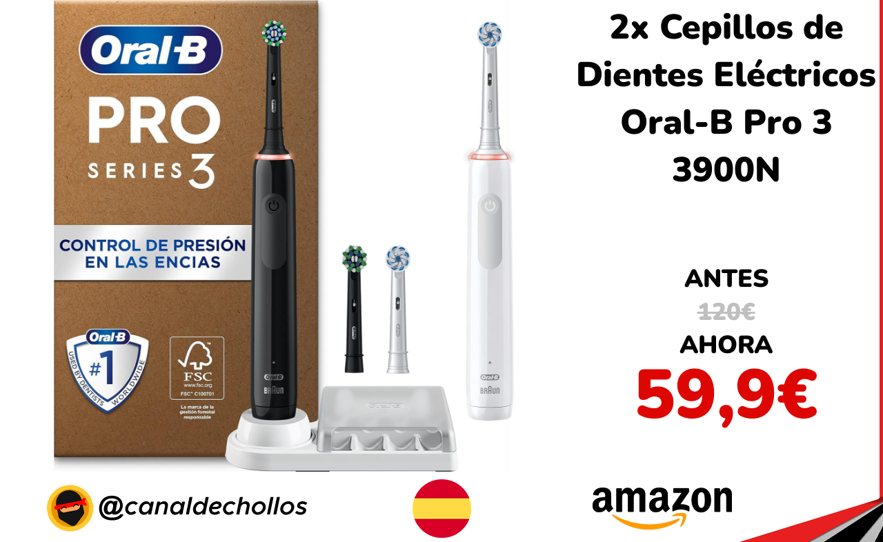 🔹 2x Cepillos de Dientes Eléctricos Oral-B Pro 3 3900N solo 59,9€ ❗️💥 (PVP: 120€)