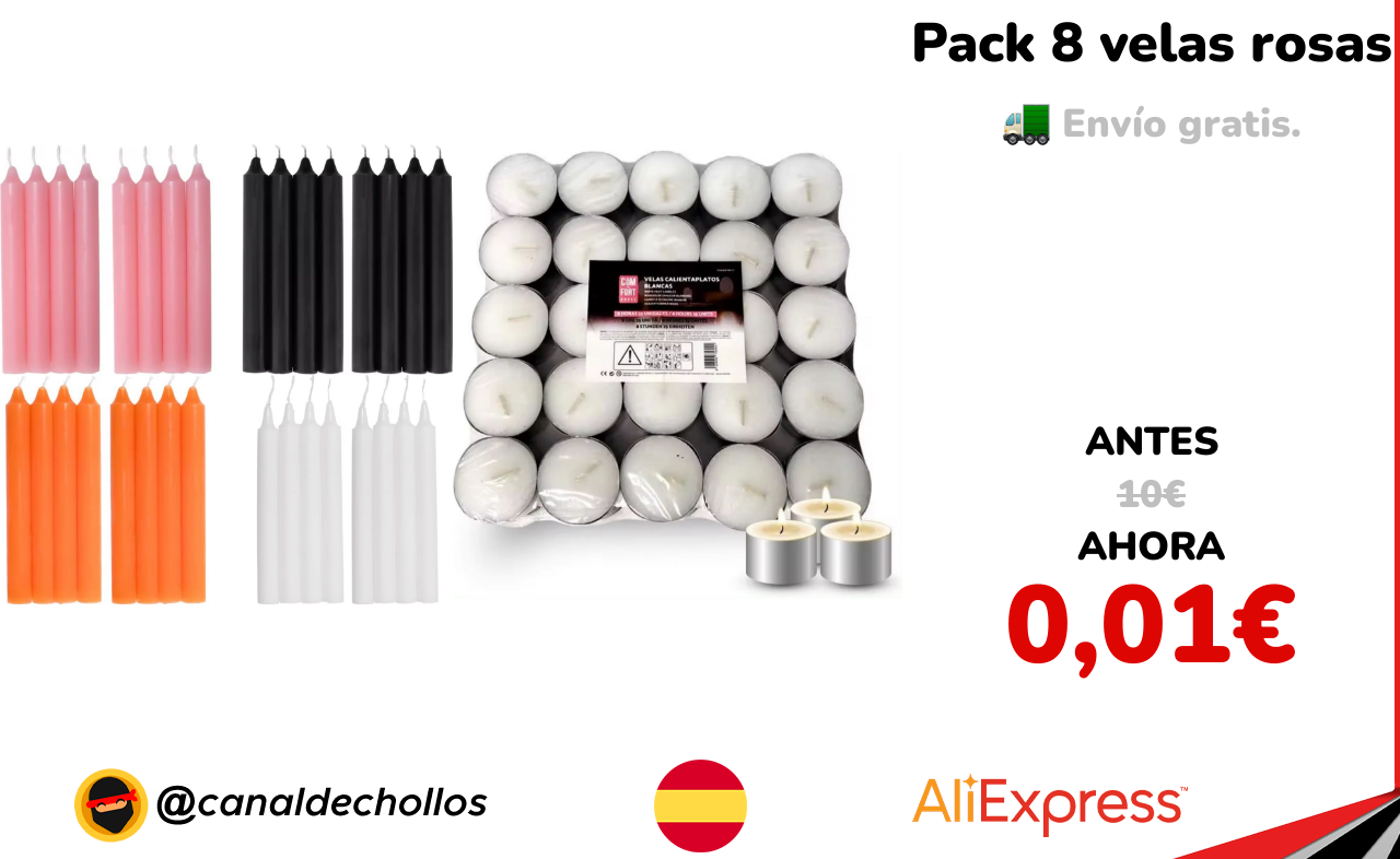 🔹 Pack 8 velas rosas solo 0,01€ ❗️💥 (PVP: 10€)