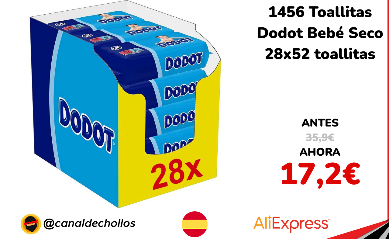 🔹 1456 Toallitas Dodot Bebé Seco 28x52 toallitas solo 17,2€ ❗️💥 (PVP: 35,9€)
