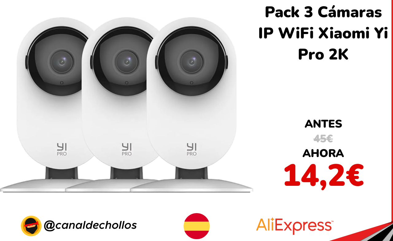 🔹 Pack 3 Cámaras IP WiFi Xiaomi Yi Pro 2K solo 14,2€ ❗️💥 (PVP: 45€)