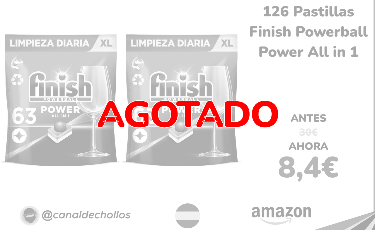 ✨ Gran precio para esta bolsa de 126 pastillas Finish Powerball All in 1 Max. Capaces de eliminar los restos más difíciles. Gracias a su Powerball previene las marcas de agua, limpiando los residuos, eliminando manchas y aportando brillo a tu vajilla. Efectivo incluso en bajas temperaturas. Cada cápsula nos sale 0,12€. En Carrefour cuesta 18,9€. Vendido y enviado por Amazon.