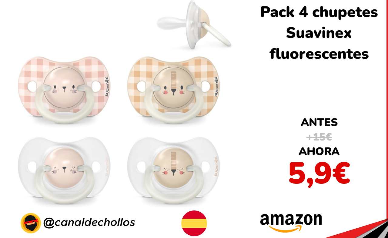 🔹 Pack 4 chupetes Suavinex fluorescentes solo 5,9€ ❗️💥 (PVP: +15€)