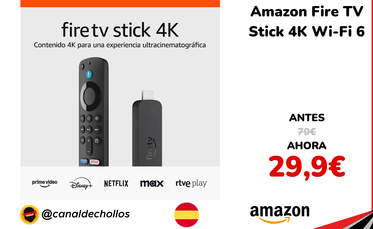 🔹 Amazon Fire TV Stick 4K Wi-Fi 6 solo 29,9€ ❗️💥 (PVP: 70€)
