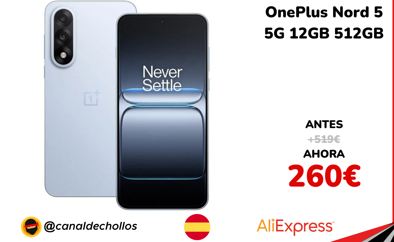 🔹 OnePlus Nord 5 5G 12GB 512GB solo 260€ ❗️💥 (PVP: +519€)