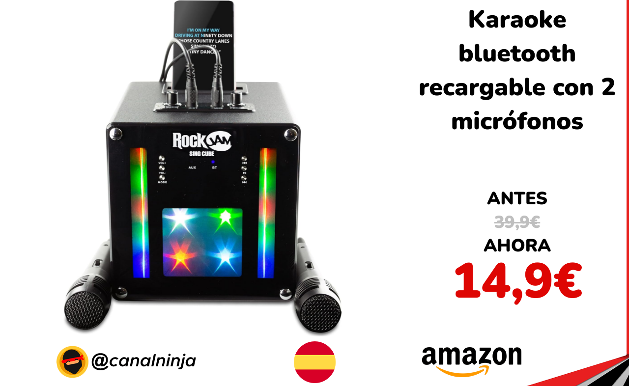🔹 Karaoke bluetooth recargable con 2 micrófonos solo 14,9€ ❗️⚔️️ (PVP: 39,9€)