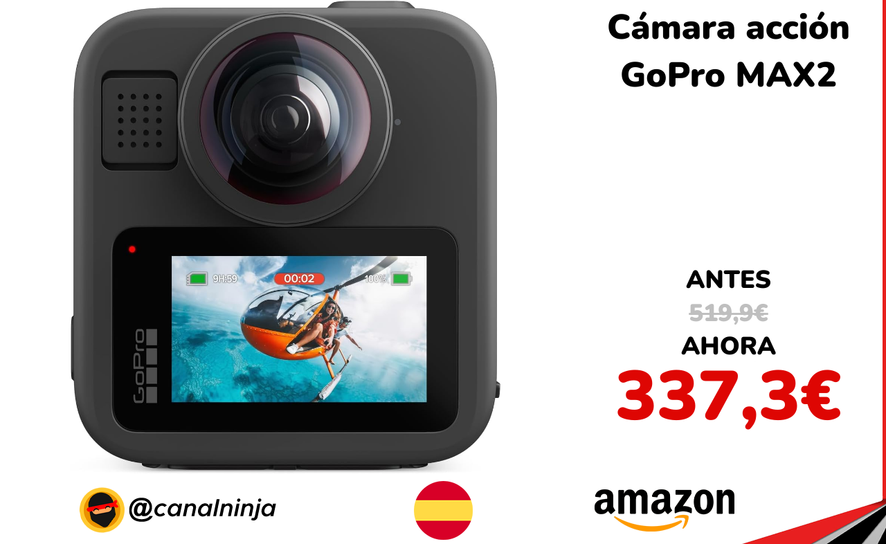 🔹 Cámara acción GoPro MAX2 solo 337,3€ ❗️⚔️️ (PVP: 519,9€)