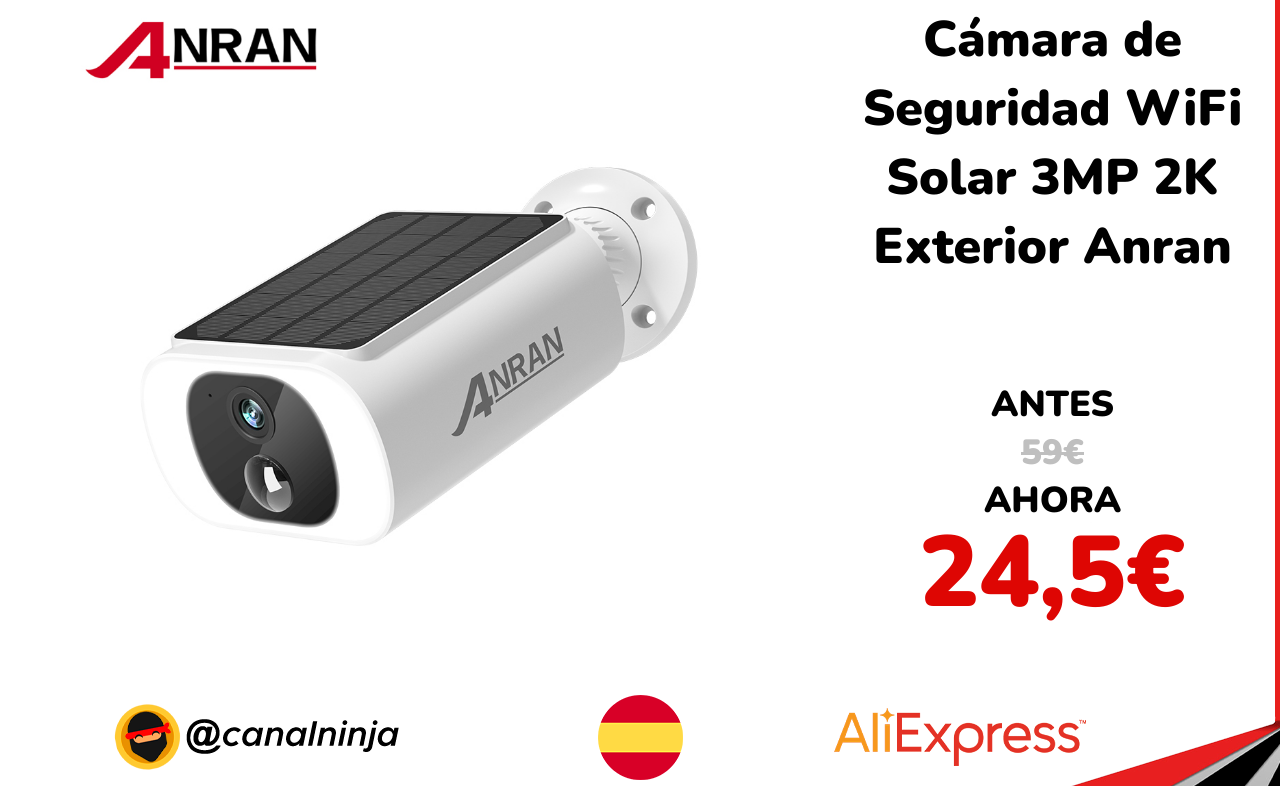 🔹 Cámara de Seguridad WiFi Solar 3MP 2K Exterior Anran solo 24,5€ ❗️⚔️️ (PVP: 59€)