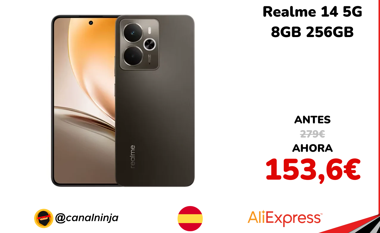 🔹 Realme 14 5G 8GB 256GB solo 153,6€ ❗️⚔️️ (PVP: 279€)