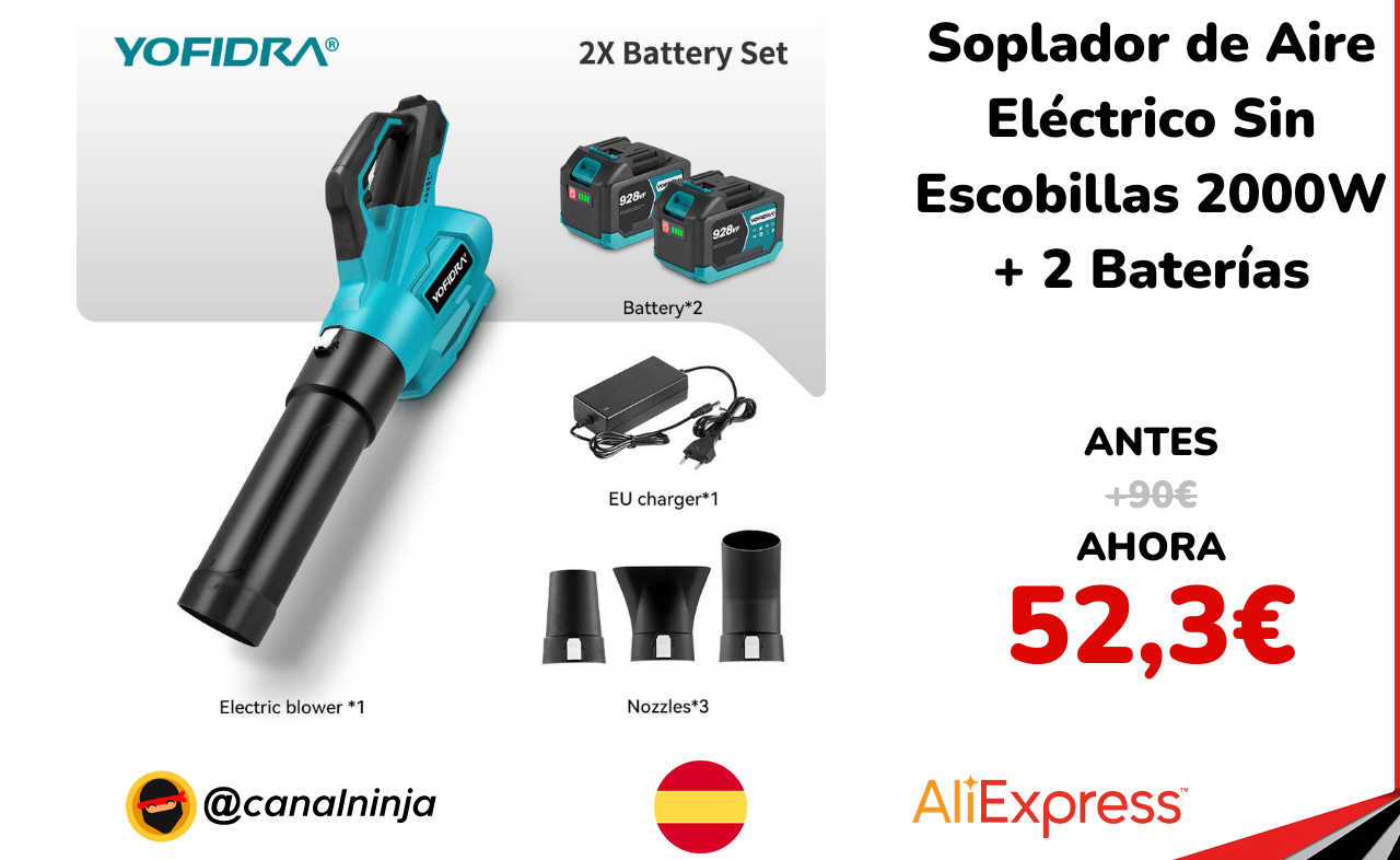 🔹 Soplador de Aire Eléctrico Sin Escobillas 2000W + 2 Baterías solo 52,3€ ❗️⚔️️ (PVP: +90€)