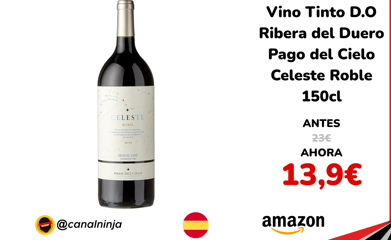 🔹 Vino Tinto D.O Ribera del Duero Pago del Cielo Celeste Roble 150cl solo 13,9€ ❗️⚔️️ (PVP: 23€)