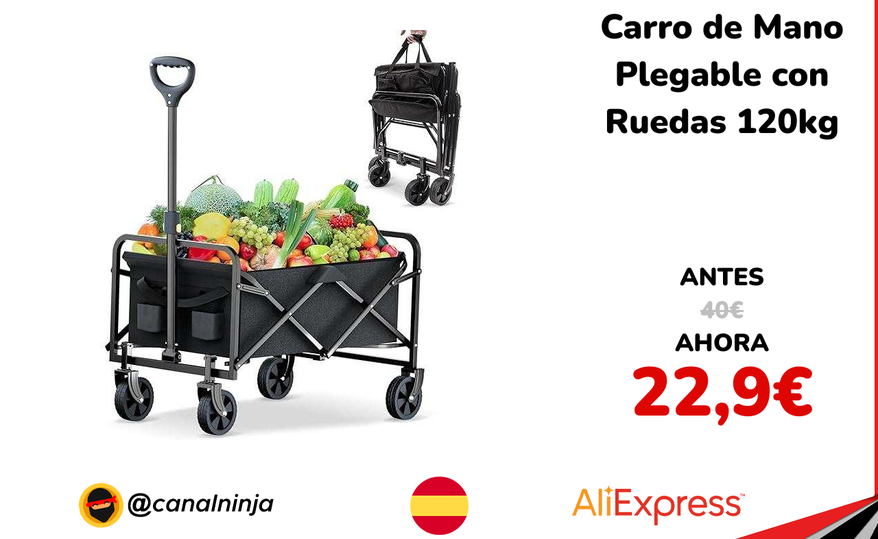🔹 Carro de Mano Plegable con Ruedas 120kg solo 22,9€ ❗️⚔️️ (PVP: 40€)